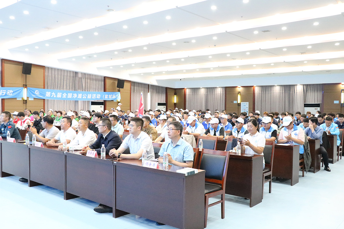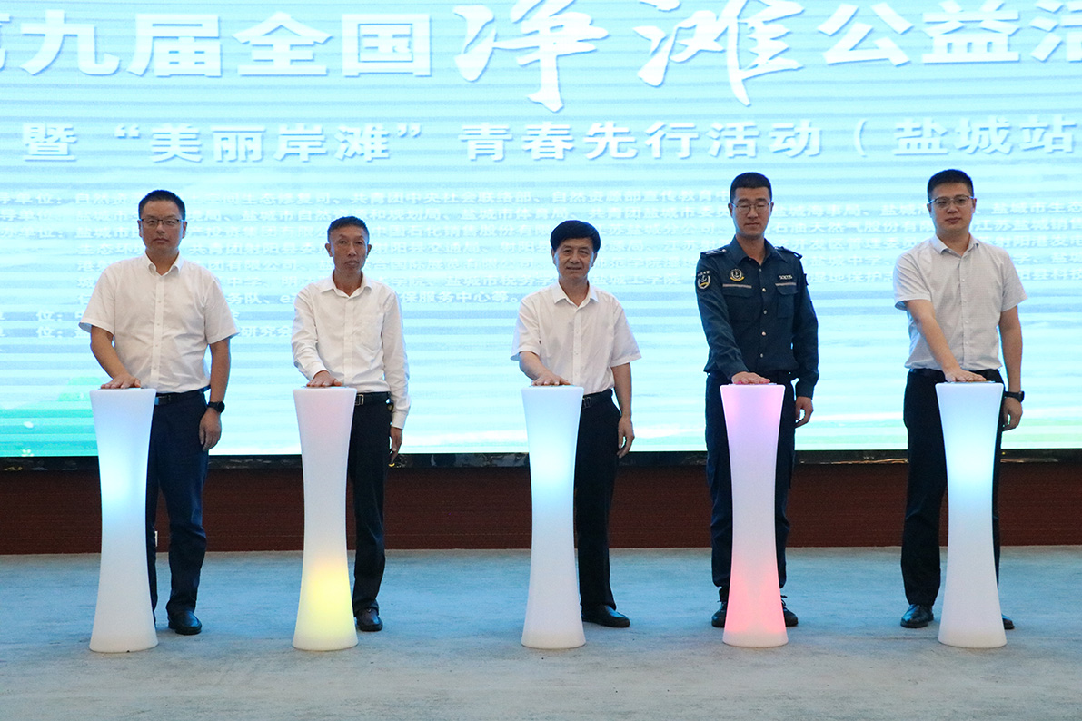 本活动由中国海洋发展基金会主办,盐城市生态环境科学研究会承办。盐城市生态环境局、盐城市自然资源与规划局、盐城市体育局、共青团盐城市委员会、盐城海事局、盐城海警局、盐城市生态环境综合行政执法局、盐城市国有资产投资集团有限公司、中石化江苏盐城石油分公司、中石油江苏盐城销售分公司等30多个单位参与了此次活动。盐城市生态环境局二级调研员马志军致开幕词,主办单位向射阳县交通局、江苏射阳港发电有限责任公司、明达职业学院等志愿者组织授予“全国净滩志愿服务队”旗帜。